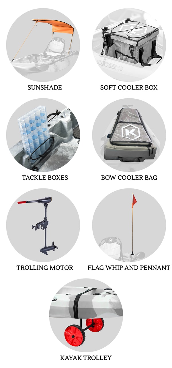Kayak’s unique design allows for several accessories to be installed with ease.