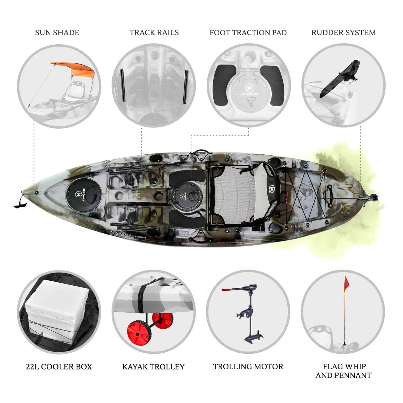 - Option to install Tracks along the length of Kayak, useful for attaching various accessories such as GoPro, Fish Finder etc.