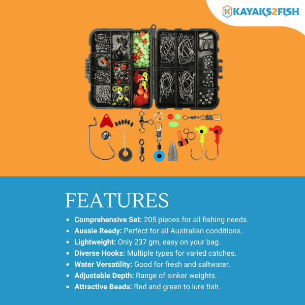 - Comprehensive Set: Contains 205 pieces, perfect for varied fishing needs.