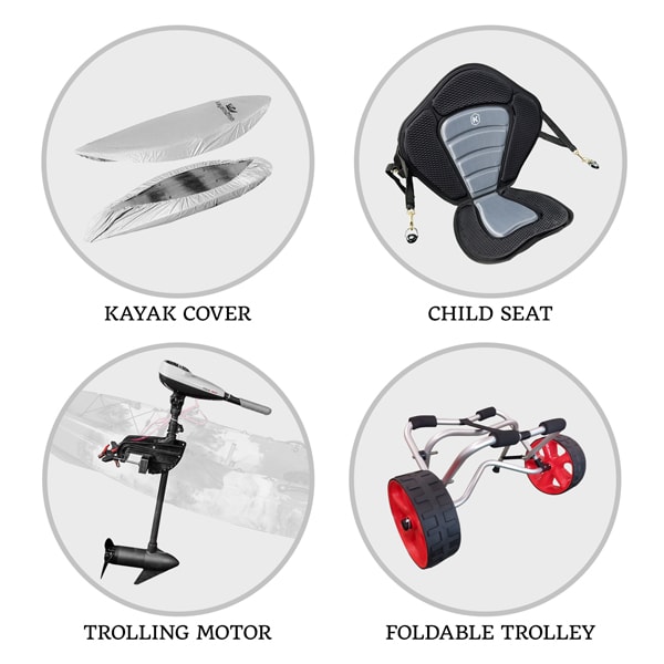 - Six scupper holes with drain plugs around the body of Kayak for easy drainage if needed.