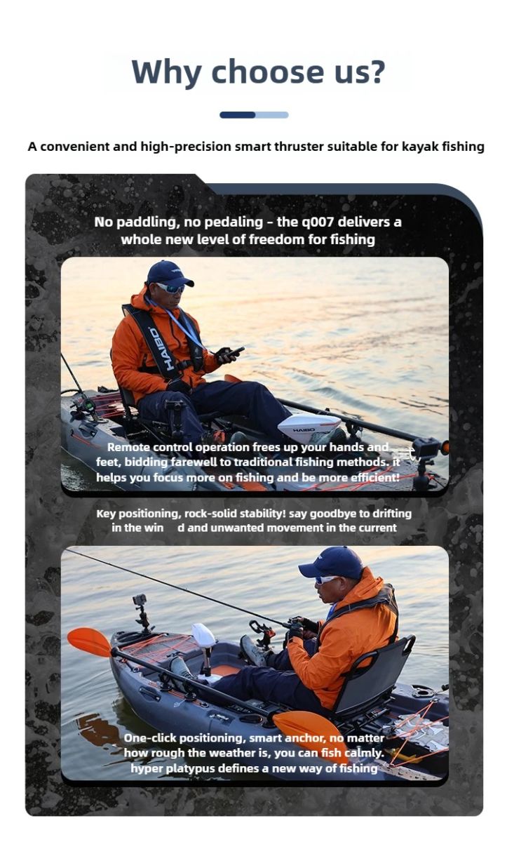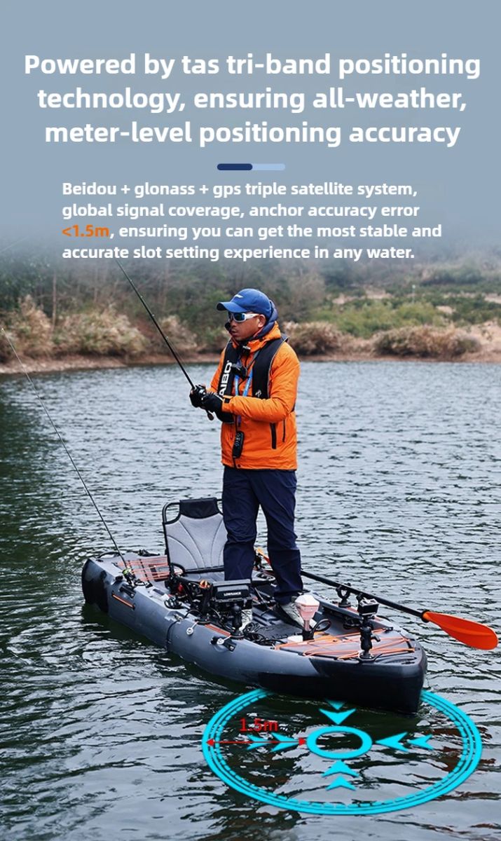 The "Haibo Platypus Series Top-tier Kayak Fishing Machine" is a high-performance, intelligently controlled kayak designed for anglers who seek an exceptional fishingexperience. This product innovatively incorporates a TAS tri-frequency positioning chipand intelligent positioning algorithms, achieving meter-level positioning accuracy. With its full-body marine-grade craftsmanship, every outing becomes more effortless, efficient,and enjoyable!