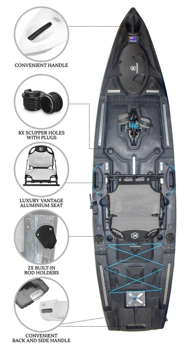 The NextGen 10.5 kayaks have a dedicated stand-up area that is purposely designed to provide increased balance when standing.