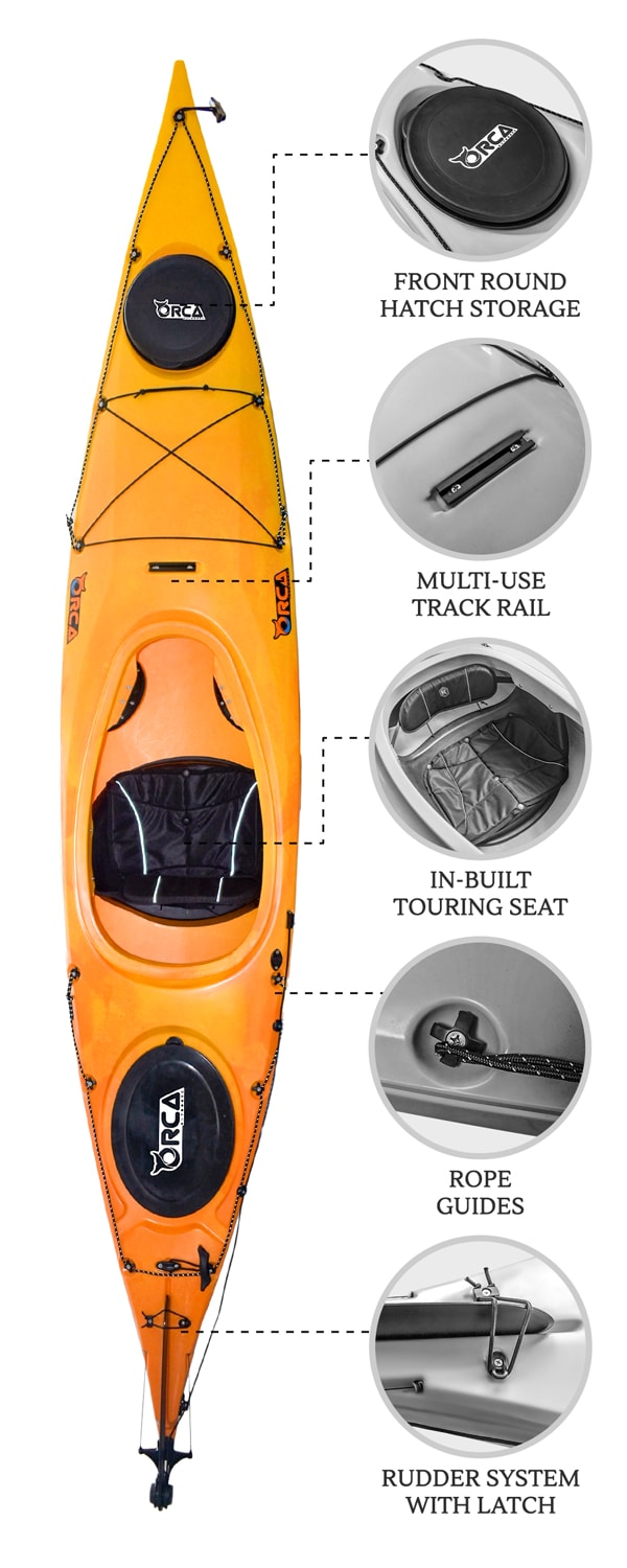 - Touring seat sits off the floor of the kayak so you do not get a wet bottom