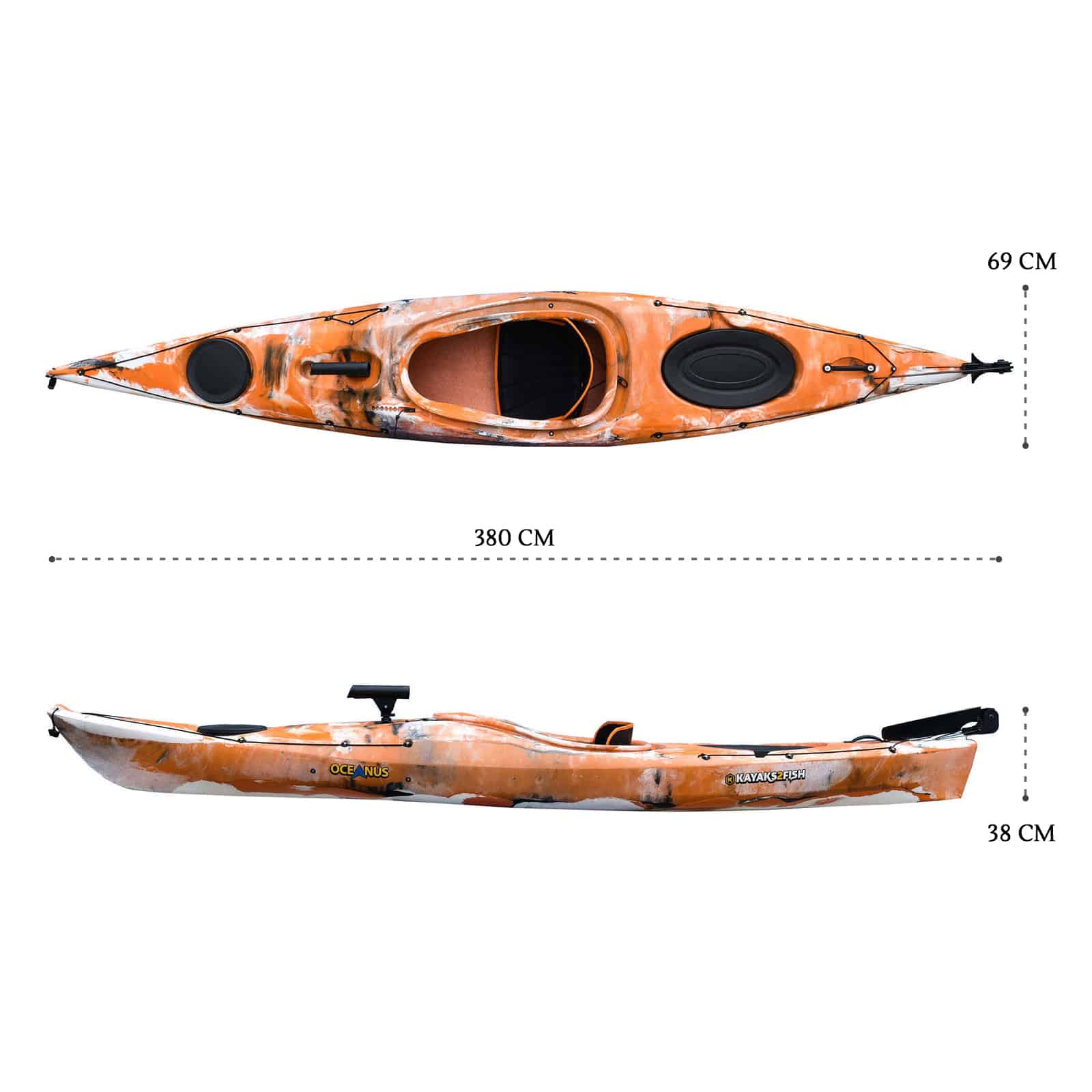 A 4.1m cover is best for the Oceanus. The cover can be found here: https://www.kayaks2fish.com/3M-Kayak-Storage-Camo-Cover-Camo https://k2f.com.au/s/cg3
