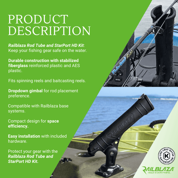 In summary, the Railblaza Rod Tube And StarPort HD Kit are essential for any kayak angler seeking both protection and convenience. They offer the perfect blend of keeping your reels elevated and clear from waves, splash, and ease-of-use quick reposition due to their bulky feature making it an indispensable tool enhancing your fishing experiences by providing full rotation up to 360 degrees. Get yours now!