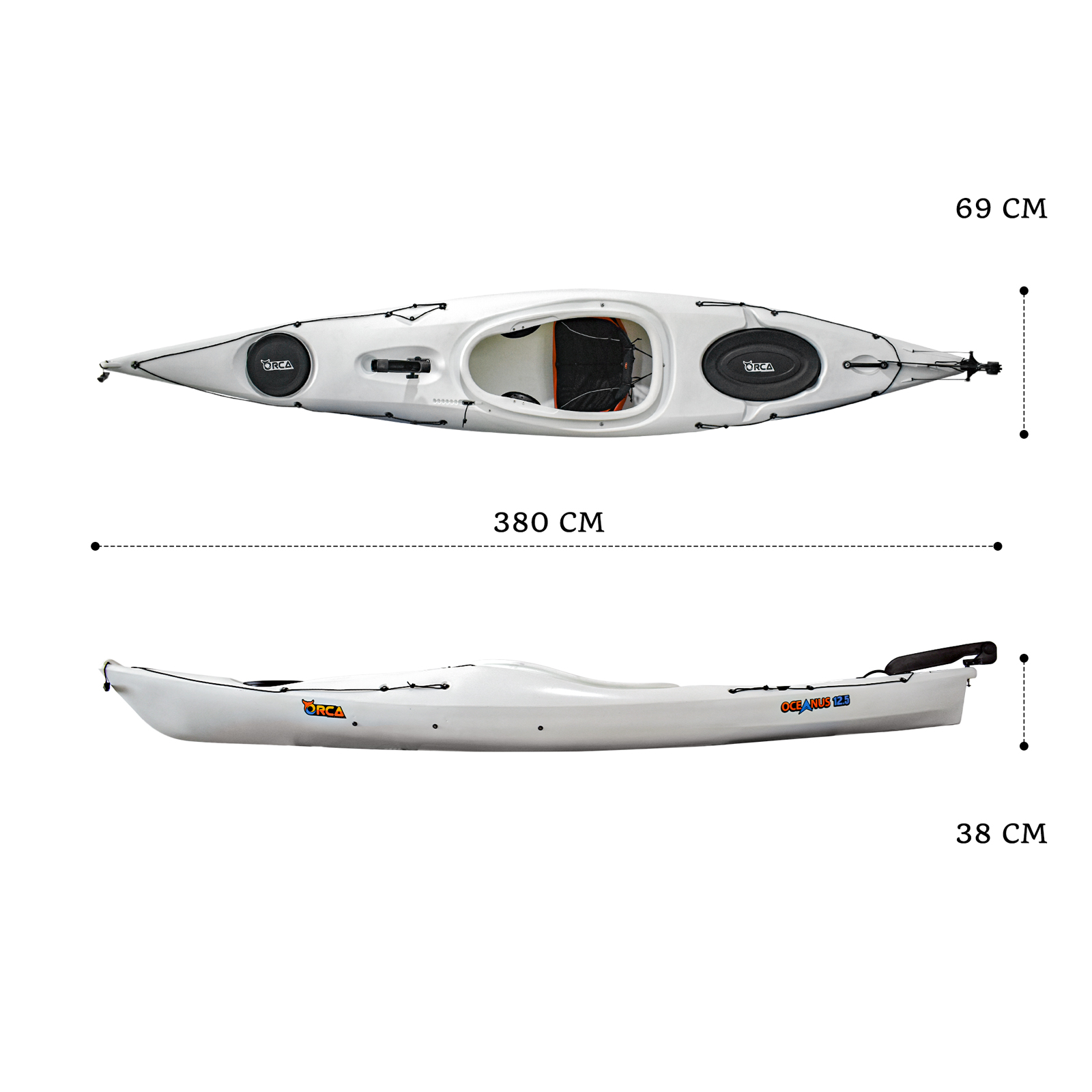 Kayaks2Fish Oceanus kayak is one of the most unique kayaks in our range in terms of design and features. The Oceanus is also the longest kayak in our range, at a whopping 3.8metres in length. Despite its length and unique design, the Oceanus is still well equipped with features, such as rear elliptical storage. Ensuring you can take enough supplies with you, for the many hours spent out on the water. The Oceanus also comes with a 3-year warranty meaning you can rest assured that your kayak is of premium quality.