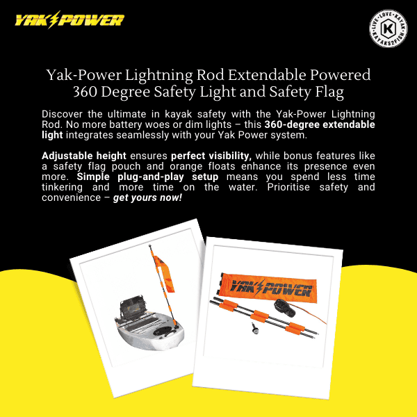 Introducing the Yak-Power Lightning Rod, your ultimate solution for enhanced visibility and safety on the water. Say goodbye to constantly changing batteries or struggling with unreliable lights because your Yak Power setup powers this innovative lighting system!