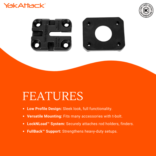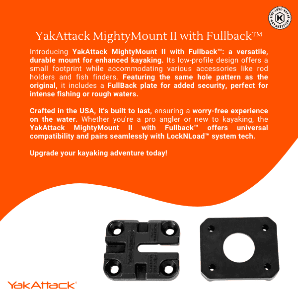 Introducing the YakAttack MightyMount II with Fullbackā¢, a versatile and durable mount to enhance your kayaking experience. With its low-profile design, this mount offers a small footprint while providing endless possibilities for attaching accessories such as rod holders, fish finders, and more.